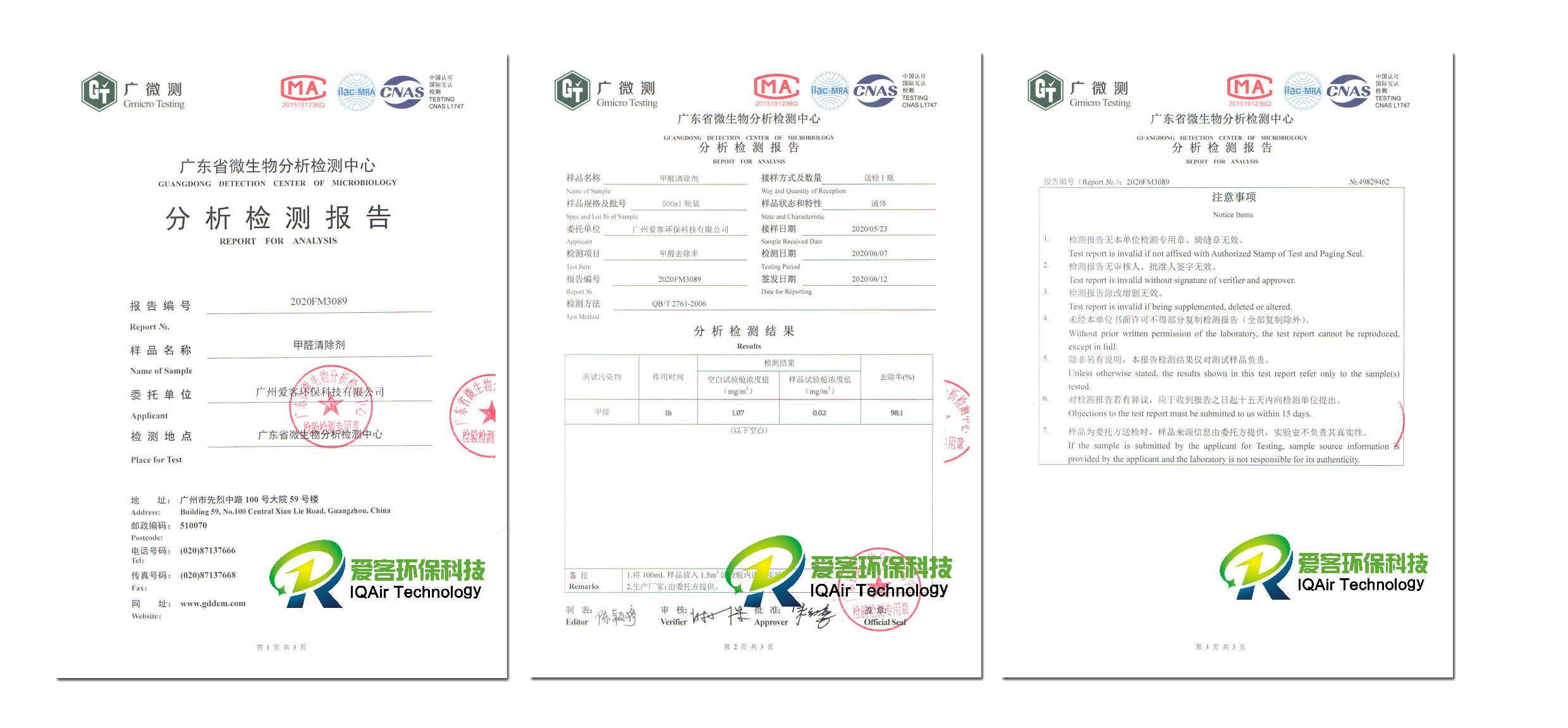 甲醛清除劑檢測(cè)報(bào)告